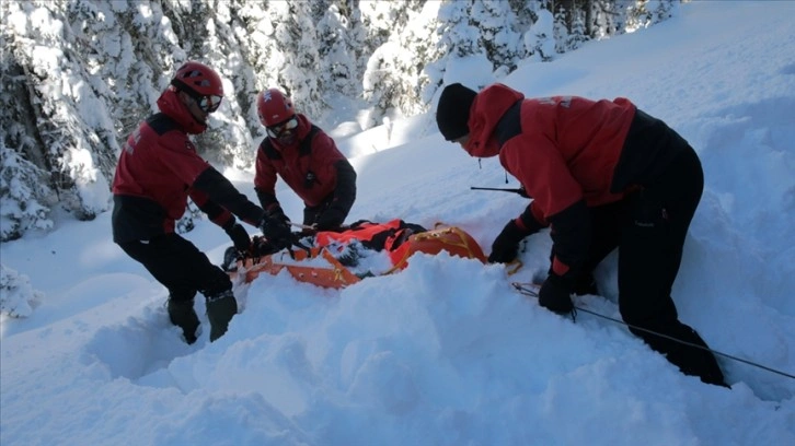 İkinci senaryoda da Kazankaya bölgesinde snowboard yaparken pistten çıkarak kaybolan ve yaralanan tatilciyi kurtarmak için çalışma yürütüldü.