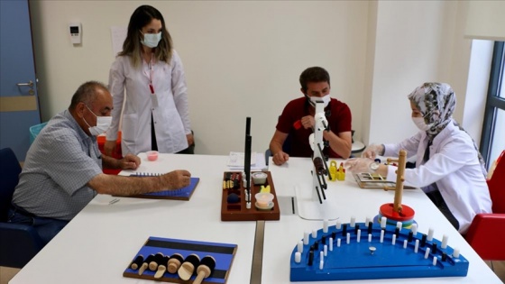 Fizik tedavinin yanı sıra musluk açma kapama, çarşaf katlama, kapı açma, fişi prize takma, çivi çakma, kağıt kesme, oyun hamuru yoğurma gibi etkinliklerle hastaların ince motor becerilerinin yeniden geliştirilmesi ve kaba motor becerilerinin çalıştırılması sağlanıyor.