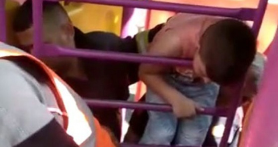 Kaydırak korkuluğuna başı sıkışan çocuğu itfaiye kurtardı