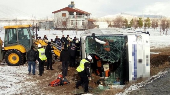 Kayseri'nin Sarız ilçesinde 2 yolcu otobüsünün devrilmesi sonucu ilk belirlemelere göre 17 kişi yaralandı.