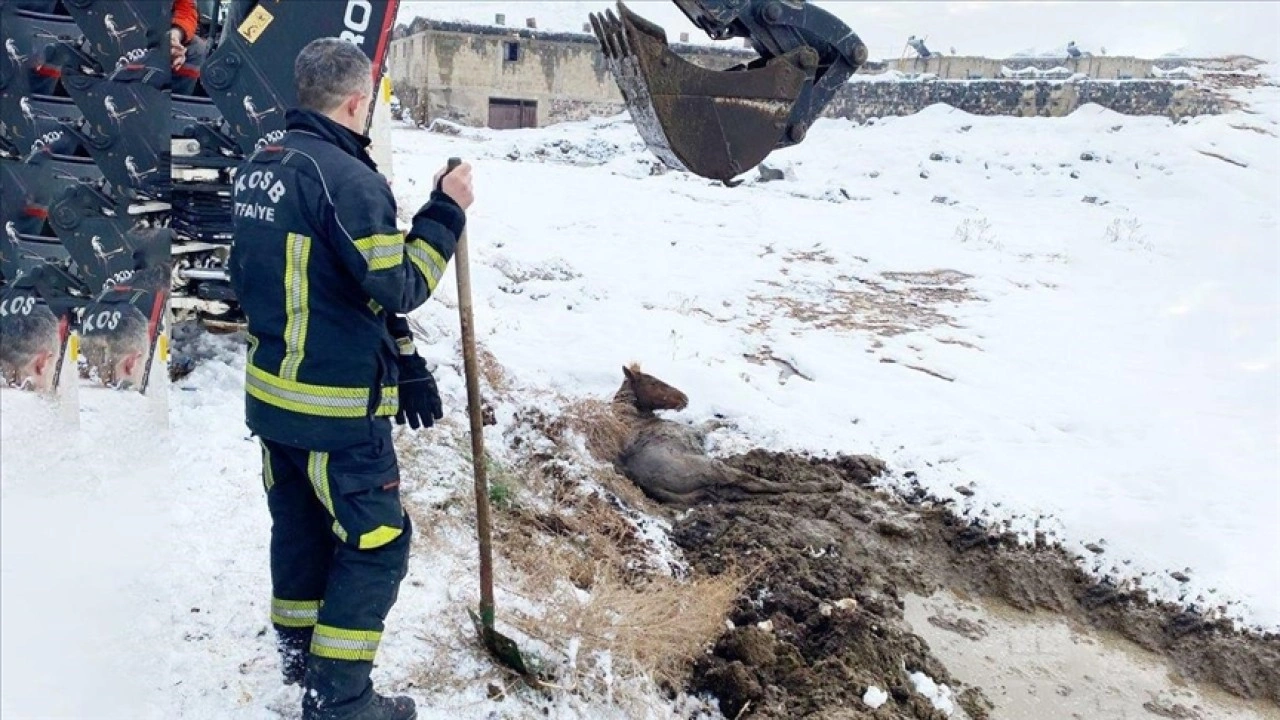 Ekipler, Bölge Fen İşleri Müdürlüğünden getirilen kepçenin de yardımıyla atı bulunduğu yerden çıkardı.