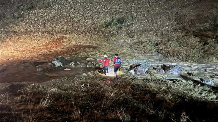 Aracı iş makinesi ile bulunduğu yerden çıkaran ekipler, sel sularına kapıldığı değerlendirilen biri kişi için arama çalışması başlattı.
