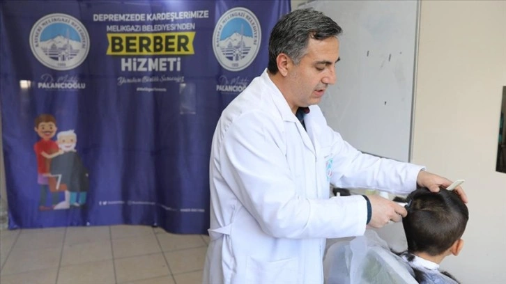 Kahramanmaraş merkezli depremlerin ardından Kayseri'deki öğrenci yurtlarına yerleştirilen afetzedelere Melikgazi Belediyesince berber hizmeti veriliyor.