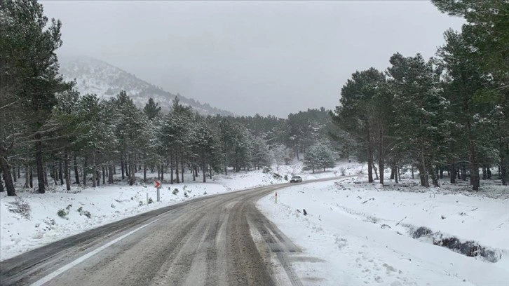 Sabaha karşı başlayan kar nedeniyle Balıkesir'in Edremit ve Çanakkale'nin Yenice ilçelerini Kazdağları'ndan geçerek birbirine bağlayan kara yolunda sürücüler güçlükle ilerliyor.