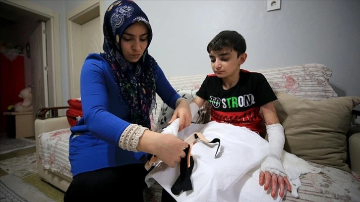 Ellerinde de oluşan yaraların sonucunda parmakları birbirine yapışan Yalvan, yaklaşık 6 ay önce Akdeniz Üniversitesi Tıp Fakültesi Hastanesinde geçirdiği ameliyat sonrası ellerini kullanmaya başladı.