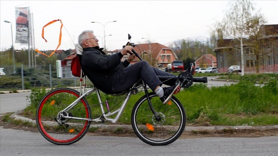 Sırbistan'ın güneyindeki Niş şehrinde yaşayan 71 yaşındaki Milance Djuric, kendi yaptığı yatay bisikletle adeta yıllara meydan okuyor.