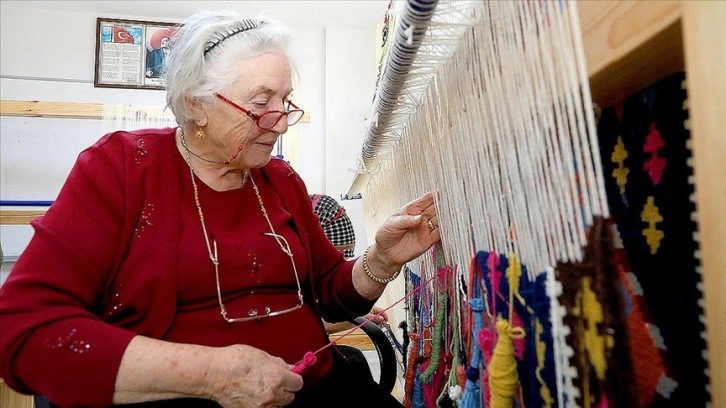 Kursa katılan 83 yaşındaki Sevim Haznedaroğlu, kilim dokumacılığı konusunda çocukken edindiği tecrübesiyle diğer kursiyerlere de yardımcı oluyor.