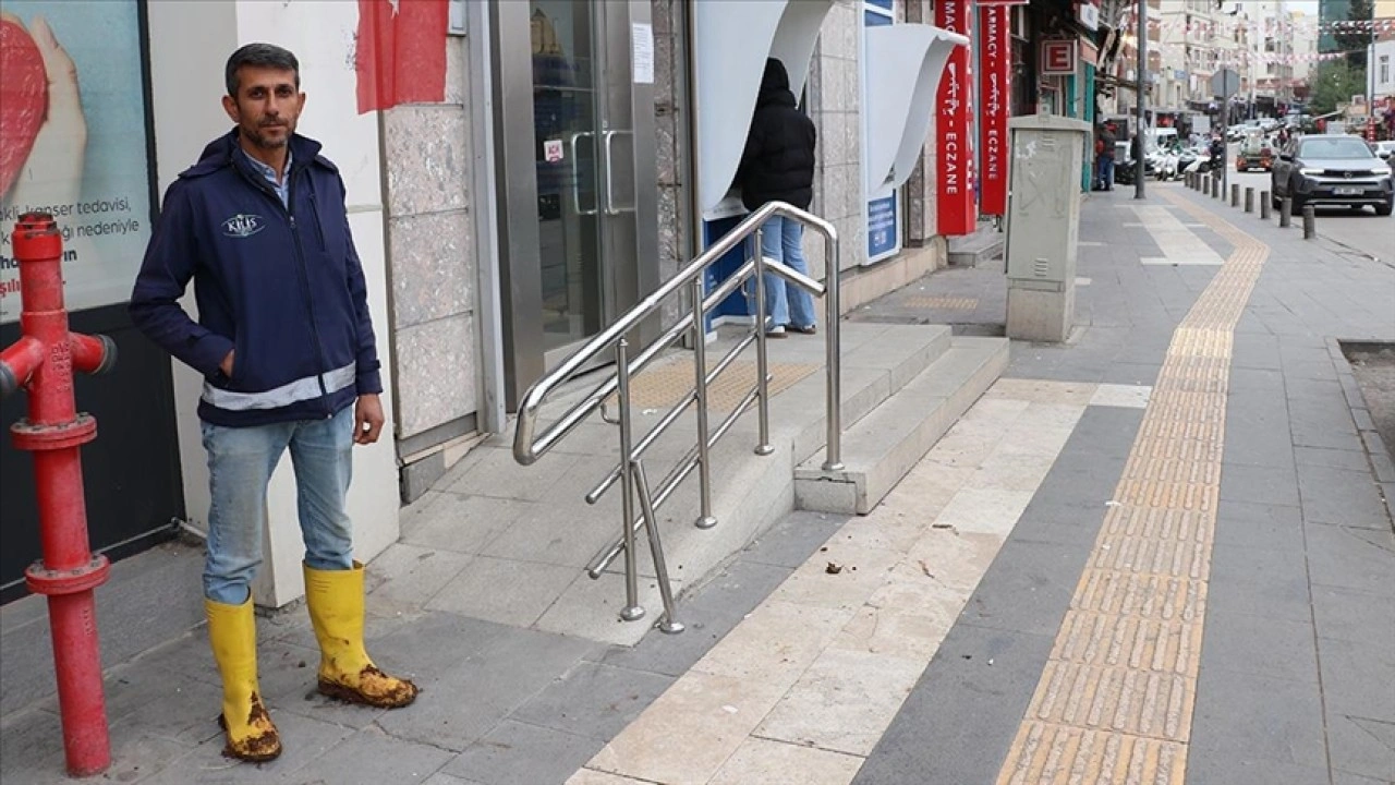 Kilis Belediyesi Park ve Bahçeler Müdürlüğünde çalıştığını belirten Özdemir, "Bankadan para çekmem gerekiyordu. Çizmem de çok çamur olduğu için dışarıda çıkartarak bankaya girdim. İçerisi çok temizdi kirlensin istemedim." dedi.