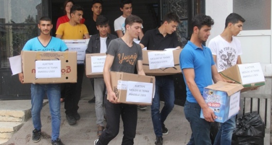 Yardım kampanyası için 1 aydır çalışan öğretmen Duran Açıkgöz, okulun sosyal ve yardımlaşma kulübünün bir faaliyeti olduğunu belirterek, "Çocuklarımızın yardımlaşma hususunda teslimat noktasına kadar bu işin içinde olmasını hedefledik. Toplanan yardım malzemeleri belki çok fazla olmayabilir ama bunun manevi değerinin yüksek olduğunu düşünüyoruz. Şuan da toplam malzemelerin ağırlığı 800 kilo aştı, isteriz ki 8 ton toplansın ama burası nihayetinde bir okul, burada amaçlanan yardım miktarının büyüklüğü değil çocuklara yardımlaşma duygusunu tattırabilmek. Kızılay ile anlaşmamız gereği harçlık alamıyorduk kuru bakliyat ve paketli malzemeler üzerinde karar kılındı. Çocuklardan harçlıklarını getirenler oldu hocam 5 lira versem diyenler oldu fakat dedik ki git bir paket bulgur al bize öyle getir" diye konuştu.