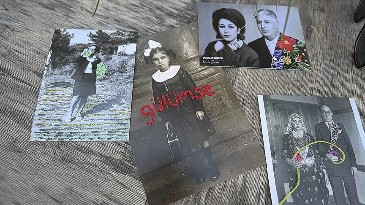 Fotoğrafların izini sürmenin kolay olmadığını vurgulayan Sandal, iğne iplikle müdahale ederek, yaratıcılığını kullanarak bunlara ilişkin yeni hikayeler oluşturduğunu dile getirdi.