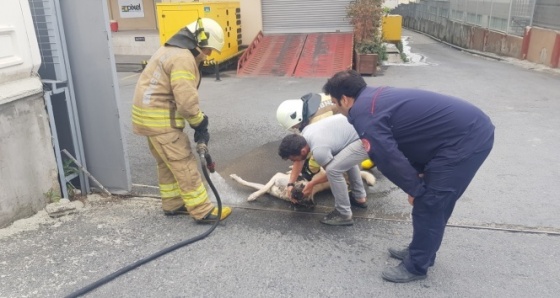 Kaza nedeniyle olay yerine gelen itfaiye ekipleri ve fabrika personeli, zehirlenen köpeği kurtarmak için adeta seferber oldu. Yerde çırpınan köpeği su dökerek ayıltmaya çalışan bir fabrika çalışanının çabaları kameralara yansıdı. Köpeğin ağzını açmaya çalışan fabrika çalışanı, nefes almasını sağladı. Bu sırada itfaiye ekipleri de su dökerek köpeği kurtarma çabalarına yardım etti. Çabaların sonunda bir nebze ayılan köpek, fabrikanın başka bir bölgesine götürüldü.