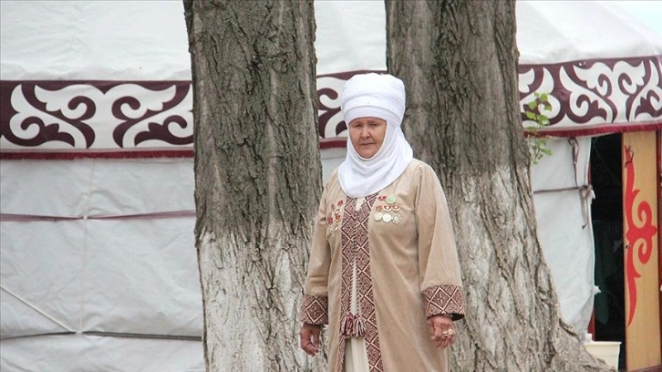 Kırgızistan'ın Celalabad Bölgesi'ndeki Toktogul ilçesinde yaşayan emekli öğretmen İrina Tokontayeva, Kırgız kadının baş giyimi "eleçek"i kültürel miras olarak gelecek nesillere aktarıyor.