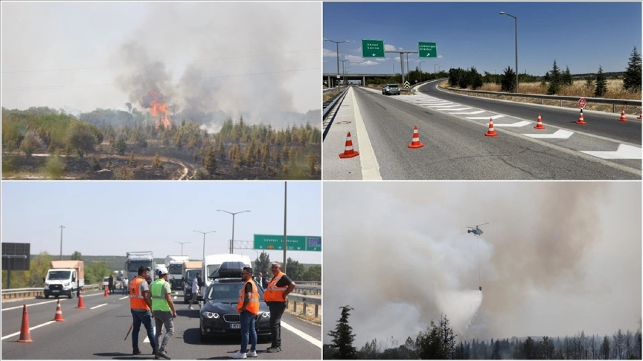Yoğun duman nedeniyle görüş mesafesinin düştüğü Avrupa Otoyolu'nda trafik çift yönlü olarak durduruldu.