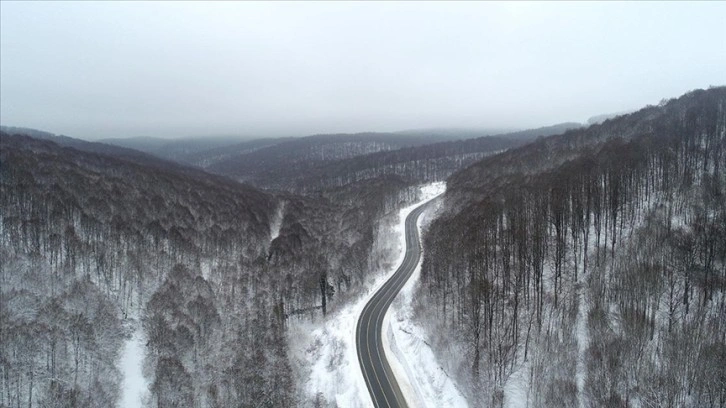 Kar yağışı sonrası bin 31 metre yüksekliğindeki Yıldız Dağları, eteklerine kadar karla kaplandı. Yağışın ardından kar beyazına orman içlerindeki derelerin ışıltısı eşlik etti.