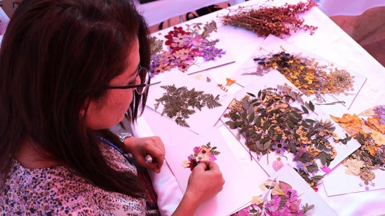 Eskişehir'deki bir el sanatları sergisine katılan Köroğlu, AA muhabirine yaptığı açıklamada, küçük yaşlardan bu yana kuruttuğu bitki ve yapraklardan önemli bir koleksiyon oluşturduğunu söyledi.