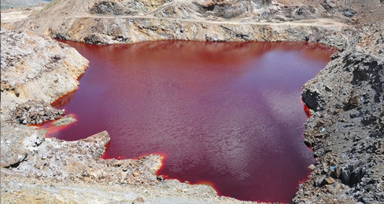 Demir madeninde yer altından çıkan suların, kalkşist ve dereceli olarak bordo çamur taşına dönüşen elementlerin kızıl rengi almasıyla oluşan göletin buz tutmuş halini gören vatandaşlar, “Burada demir madeni çıkarılıyordu. Firma, madeni terk ettikten sonra burada kızıl gölet oluştu.