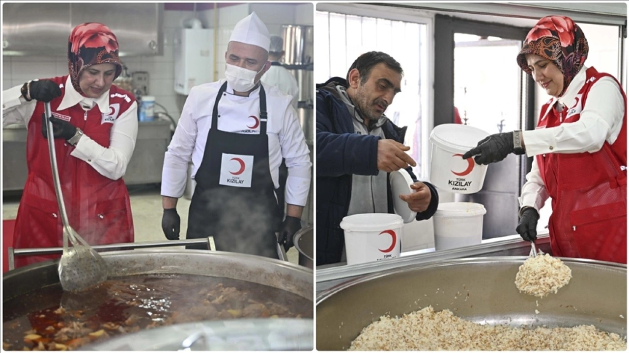 Türk Kızılay Genel Başkanı Fatma Meriç Yılmaz, Ulucanlar Dr. Cevat Naki Akkerman Aşevi'nde, ihtiyaç sahipleri için yemek pişirilmesi ve dağıtılmasına katıldı.