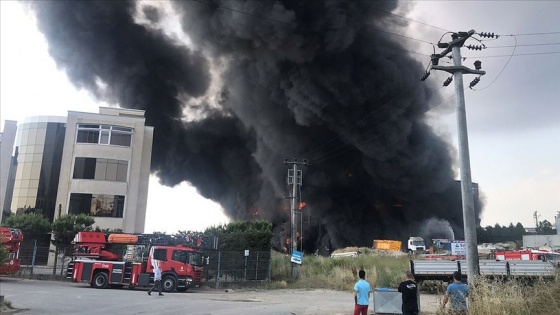 Alevlerin çevredeki fabrikalara sıçramaması için önlem alan itfaiye ekipleri, zaman zaman patlama sesleri de duyulan yangına güçlükle müdahalede bulunuyor.