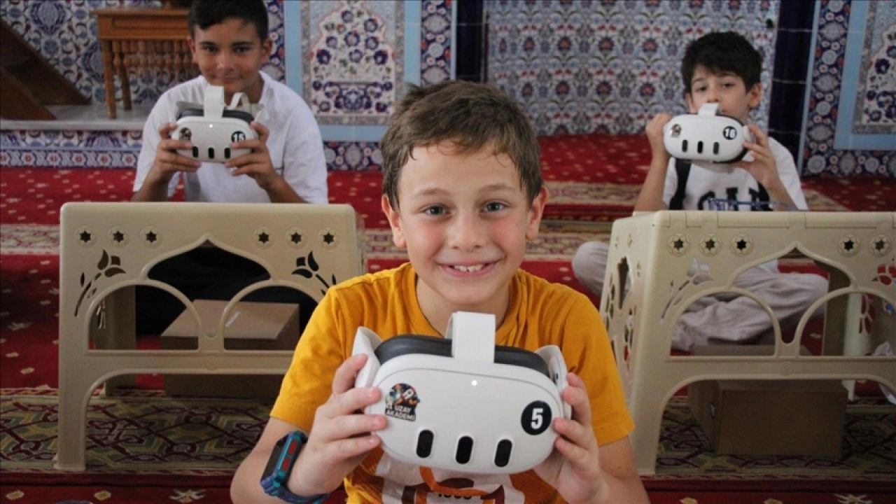 Yazlık Merkez Camisi'ndeki yaz Kur'an kursu derslerinde, hayırseverler tarafından temin edilen sanal gerçeklik gözlüklerini kullanan öğrenciler, 20 kişilik grup halinde kendileri için hazırlanan gösterimlerde, Kabe'nin etrafında tur atıp Mescid-i Aksa ve çevresini gözlemleyebiliyor.