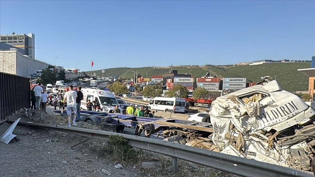 Ekiplerce yapılan kontrolde tırdan düşen konteynerin çarptığı otomobildeki 5 kişinin hayatını kaybettiği belirlendi.