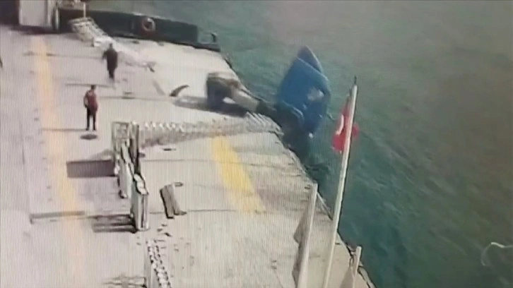 Eskihisar Mahallesi'nde bulunan arabalı vapur iskelesinde arızalı durumdaki 34 EM 3127 tır, dorsesinden ayrılması için yapılan çalışma sırasında freni boşalarak denize düştü.