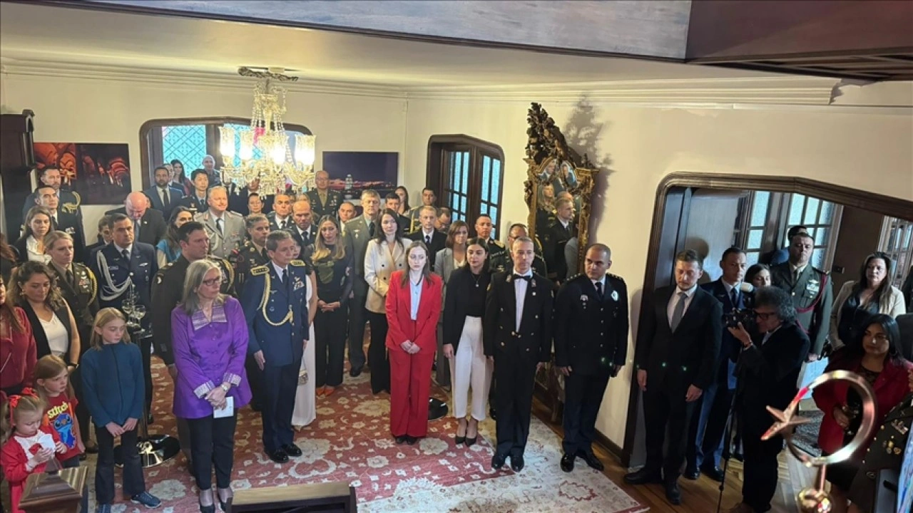 Türkiye'nin Bogota Büyükelçisi Beste Pehlivan Sun ile Silahlı Kuvvetler Savunma Ataşesi Yarbay Serdar Surada'nın ev sahipliğinde büyükelçilik rezidansında resepsiyona, Kolombiya'da yer alan farklı ülkelerin üst düzey askeri temsilcilikleri, çeşitli ülkelerin büyükelçileri, ülkede yaşayan Türk vatandaşları ve büyükelçilik çalışanları katıldı.