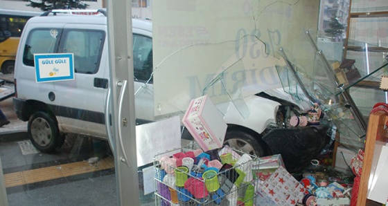 İş yerinin camını kırarak ön tarafının bir bölümü dükkan içine girmesi sonucu ortalık adeta savaş alanına döndü. Oldukça işlek olan yol üzerinde kaza anında yayanın bulunmaması olası bir faciayı önledi. İş yerinde ve 4 araçta maddi hasar oluşurken, kazayı yara almadan atlatan sürücü olayın şokunu yaşadı.