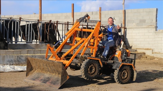 İlçeye bağlı Orhaniye Mahallesi'nde aile işletmesinde hayvancılıkla uğraşan Emre Çayır (26) ile kuzeni Levent Aslan (33), tesiste kullanıma uygun iş makinesi yapmaya karar verdi.