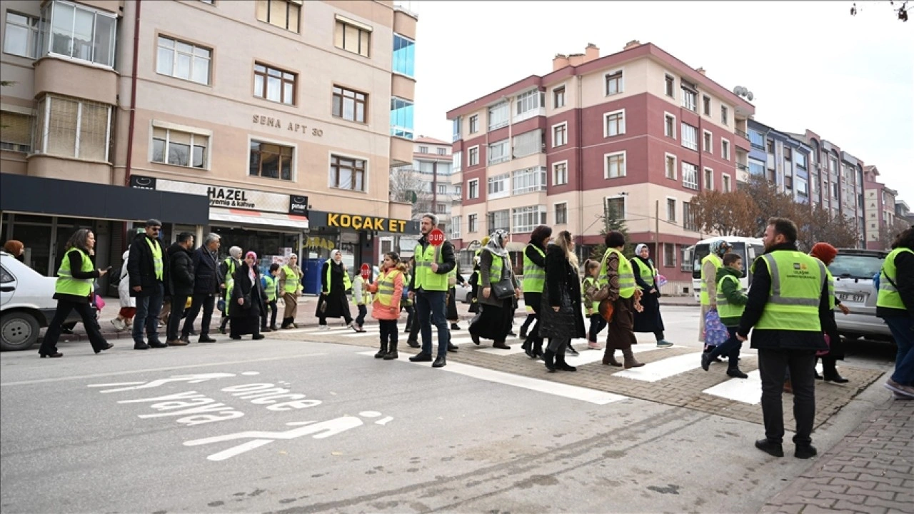 Ders başlangıç ve bitiş saatlerinde okul çevresinde oluşan araç yoğunluğunu azaltacak, trafik güvenliğini artıracak bu projede belirlenen toplanma noktasında bir araya gelen öğrencilerimiz, velileri eşliğinde reflektörlü yelekleriyle bir otobüs mantığında toplu olarak yürüyerek okula güvenle gidiyor."