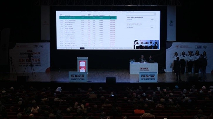 Selçuklu Kongre Merkezi'ndeki kura çekimine, ev sahibi olma hayali kuran çok sayıda vatandaş katıldı.