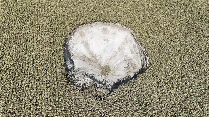 İlçeye bağlı Ekmekçi Yaylası'nda Barış Ekmekçi'ye ait ayçiçeği tarlasında vatandaşlar obruk oluştuğunu fark etti.