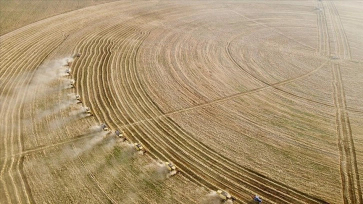 Her biri 68 futbol sahası büyüklüğüne sahip hububat ekili tarlaların her birinde hasat 10 biçerdöverle yapılıyor.