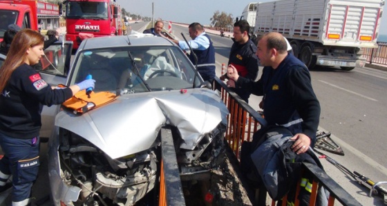 Edinilen bilgiye göre, kaza, Erdemli’ye bağlı eski sahil beldesi Limonlu’da Mersin-Antalya D-400 karayolu üzerinde meydana geldi. Mersin’den Antalya istikametine seyreden Faruk Dölek (26) yönetimindeki 33 K 9112 plakalı otomobil, sürücüsünün direksiyon hakimiyetini kaybetmesi sonucu kontrolden çıkarak çift şeritli Limonlu köprüsündeki orta korkuluklara çarptı.