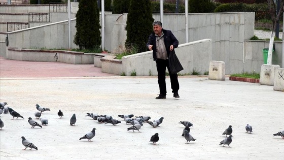 Karabük'ün Safranbolu ilçesinde yaşayan Ömer Öğüt (50), boşalan meydanlardaki güvercinleri besliyor.