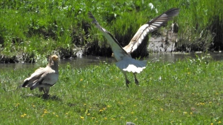 Türkiye'deki dört akbaba türü arasında göç eden tek tür olduğu bilinen ve nesli koruma altında olan küçük akbabalar, üremek için Kars'a geldi.