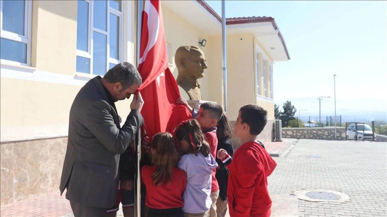 Okul müdürü Mithat İlhan da derslerini daha kolay anlamaları ve pekiştirmeleri amacıyla öğrencilere vatan ve bayrak sevgisinin önemini anlatıyor.