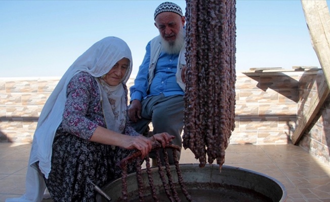 ELAZIĞ (AA) - Elazığ'ın yöresel lezzetleri arasında yer alan "orcik" adı verilen cevizli sucuk, köylülerin günler süren emeğiyle damakları tatlandırıyor.