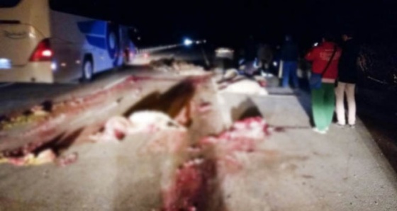 Afyonkarahisar’ın Sandıklı ilçesinde, bir otobüsün karayoluna çıkan sürüye çarpması sonucu 30 koyun telef oldu.