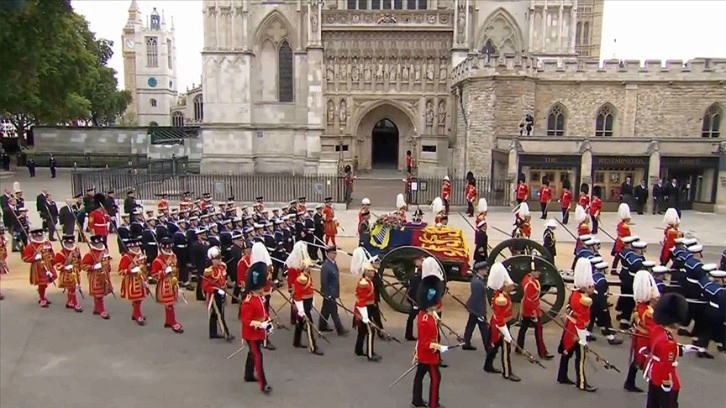 Kraliçe Elizabeth'in tabutu, TSİ 12.47'de askeri geçit töreniyle cenaze merasiminin yapılacağı başkent Londra'daki tarihi Westminster Abbey Kilisesi'ne taşındı.