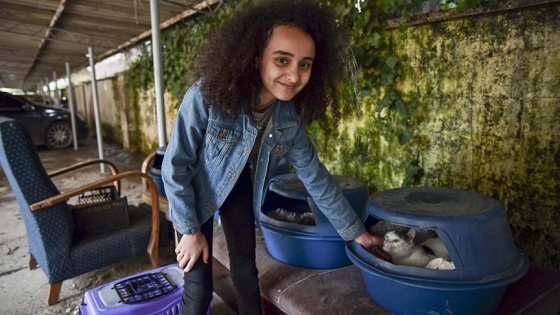 Gaziantep'te sokak hayvanları için yaptıklarıyla örnek olan 13 yaşındaki Azra Bağcı, hayvanları soğuktan korumak için leğenlerden kedi evleri yaparak, oturduğu mahallenin farklı noktalarına yerleştirdi.
