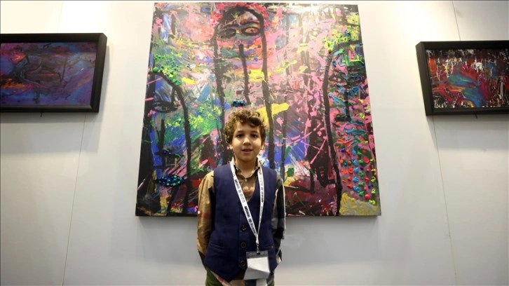 ArtAnkara Çağdaş Sanat Fuarı'nın en küçük ressamı 9 yaşındaki Sarp Öksüz'ün, boyundan büyük tuvallere yaptığı resimler ziyaretçilerin beğenisini kazandı.