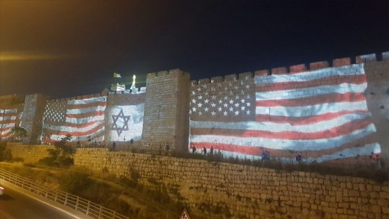 ABD’nin Tel Aviv Büyükelçiliği’nin Kudüs'e taşınmasının birinci yıldönümü münasebetiyle, işgal altındaki Doğu Kudüs’ün Eski Şehir bölgesini çevreleyen tarihi surlara ABD ve İsrail bayrakları yansıtıldı.