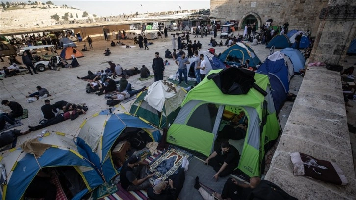 Ramazanın son günlerini Mescid-i Aksa'nın manevi ikliminde itikafa girerek geçirmek isteyen çok sayıda Müslümanın kutsal mabedin avlu ve bahçelerinde çadır kurduğu görülüyor.