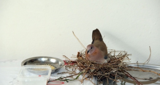 Odaya yuva yapmakla kalmayan kumru, yaptığı yuvada yumurtladı ve artık yaşamını bu sıcak evde sürdürüyor. Kumrunun yuva yaptığı odaya fazla girmemeye çalışan aile bireyleri, yuvanın yanına yiyecek ve su da bıraktı. Kumrunun eşinin ise her sabah gelerek yuvaya yiyecek taşıdığını söyleyen Nezaket Coşkun, “Eşi geliyor ağzına yem veriyor. Gelirken camı tıklatıyor biz de açıyoruz. Çok güzel bir görüntü” diye konuştu.