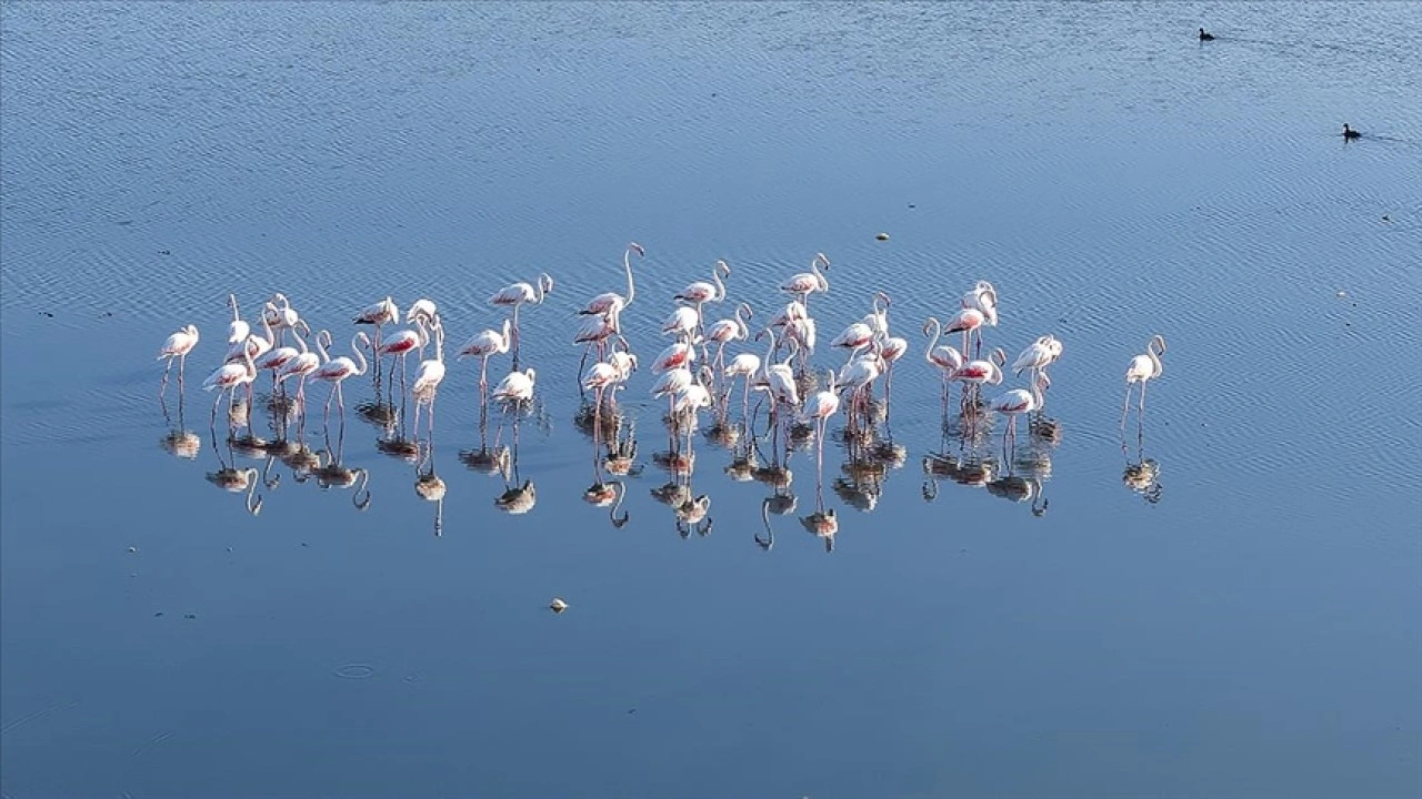 Yaz boyunca beslendikleri kıyılar çorak araziye dönüşen ve barınma alanları daralan "flamingolar"ın, su debisinin daha yüksek olduğu bölgelerde küçük gruplar halinde beslendikleri görüldü.