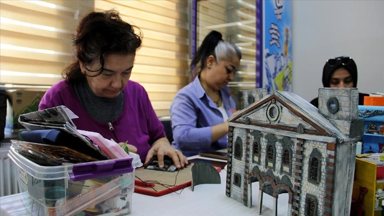 Kayseri'nin tarihi yerlerinden Saat Kulesi, Tren Garı, Panaya Rum Kilisesi, Döner Kümbet ve İstanbul'daki Galata Kulesi'nin dioramalarını yapan kursiyerler, yaptıkları ürünleri satarak ev ekonomilerine katkı sağlıyor.