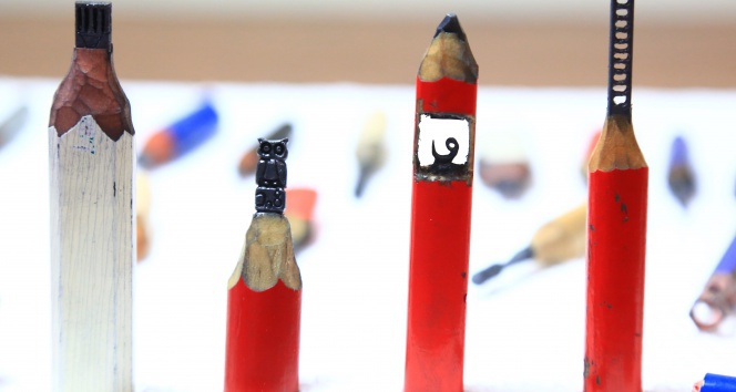 Üniversitesi Kimya Mühendisliği Bölümü öğrencisi Recep Alçamlı, kurşun kalemlerin ucuna işlediği minyatür figürleriyle dikkat çekiyor. Dünyada henüz ismi