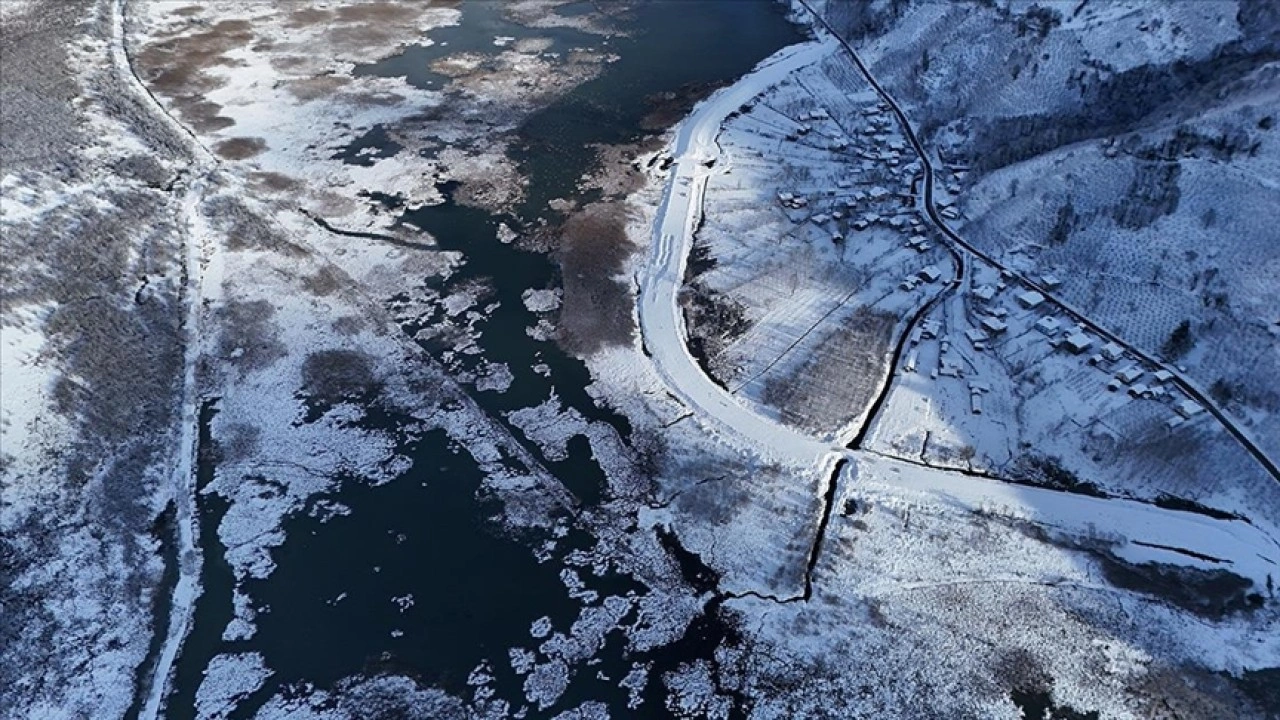 İlçe merkezine 5, Düzce merkeze 25 kilometre mesafedeki gölün bulunduğu havzada kar yağışının ardından soğuk hava etkili oldu.
