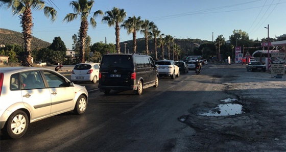 Günübirlik çevre kentlerden ilçeye gelenlerin de yer aldığı tatilciler, İzmir'in Selçuk İlçesi yönünden ilçeye girmek isterken 5 kilometreyi bulan araç konvoyları oluşturdu. Kent çıkışına yönelik şeritlerde ise hiç araç olmaması dikkat çekiyor.