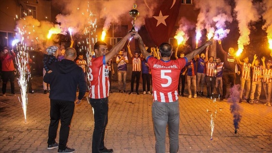 Yönetim ve futbolcular şampiyonluk kupasını meşaleler eşliğinde havaya kaldırırken, köyün yaşlıları yöresel kıyafetleriyle halk oyunları oynadı.